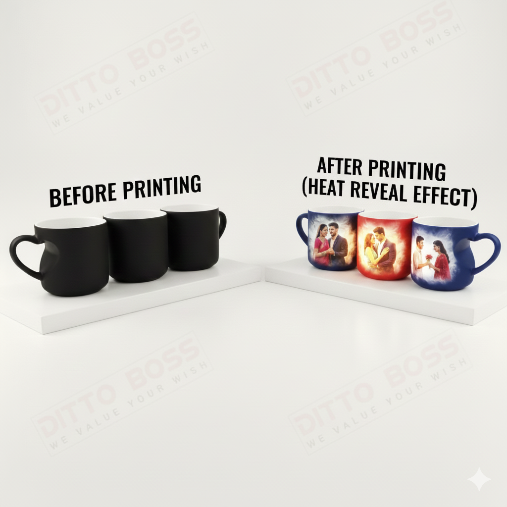 Standard glossy magic mugs often suffer from “ghosting”—where you can see the faint outline of the photo even when the mug is cold. Our Advanced Matte Stealth Coating provides superior opacity. When cold, the Personalized Heart Handle Magic Mugs look like a high-end designer piece, keeping your secret image 100% hidden until the temperature rises.